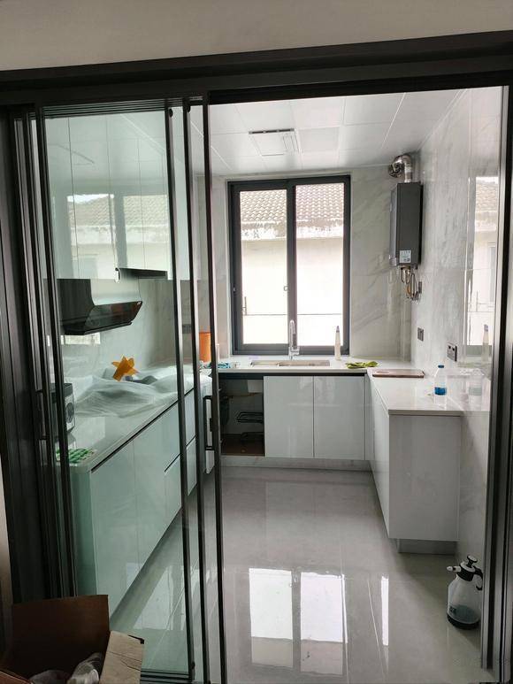 客厅美的设计家3P风管P,房间美的巨瀑风1.5P(请忽略铜管,我知道很丑)家电几乎都是海尔,油烟机灶具是老板的。